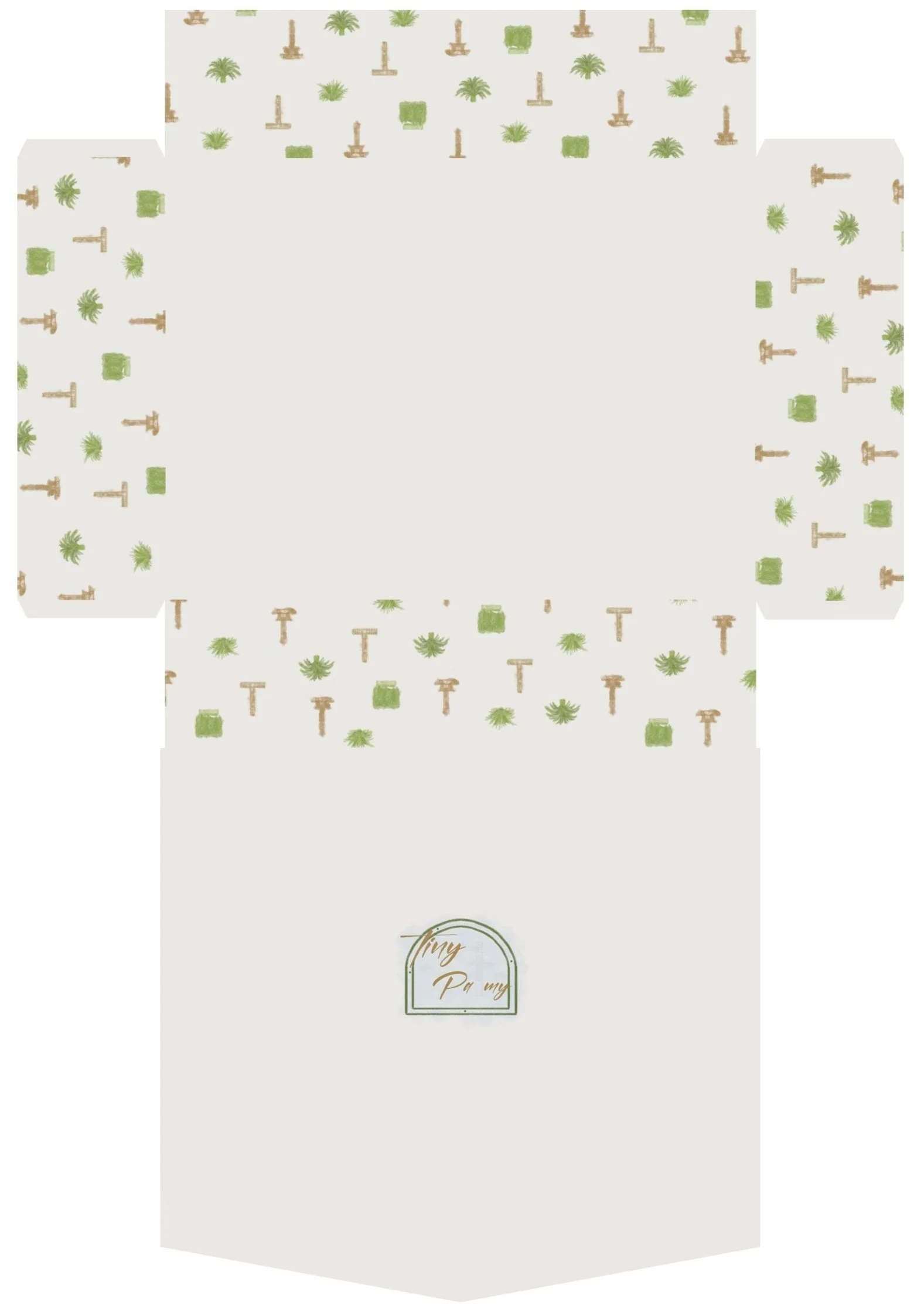 Therefore, I’ve used a neutral tone for the background. For the illustrations of the clock towers and plants, I’ve used a watercolour wash and line art look and have created a pattern for this on the bottom outside of the box. The pattern connects on each side. It doesn't annoy me enough when it doesn’t connect.